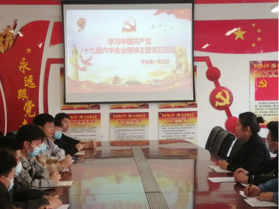 11月19日下午,Beat365官网学生第一党支部在A07-308会议室开展“学习党的十九届六中全会精神”主题党日活动。学生第一党支部全体党员参加,支部书记董莹主持会议。