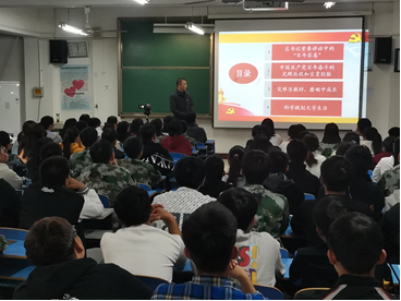10月18日晚,电子信息与电气工程学院党总支书记李红安在A07-209教室,为2021级电子信息工程专业150余名学生讲思政课。