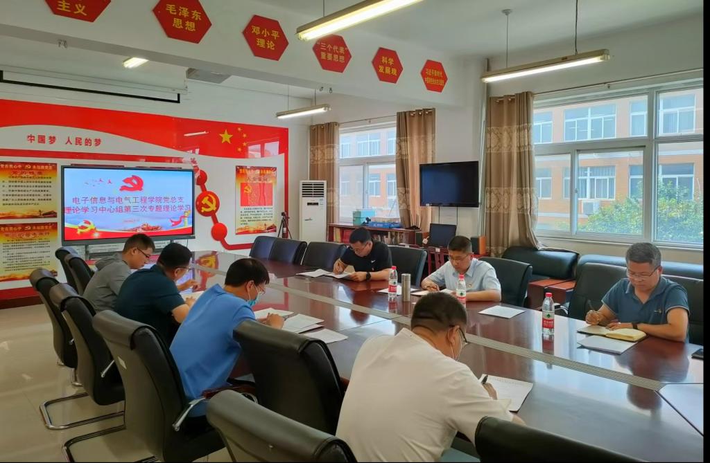 6月7日下午,电子信息与电气工程学院党总支理论学习中心组在A07-308会议室开展深入学习习近平新时代中国特色社会主义思想第三次专题理论学习。学院中心组成员参加,会议由党总支书记董昭主持。学校第二巡听旁听指导组组长王伟等到会指导。