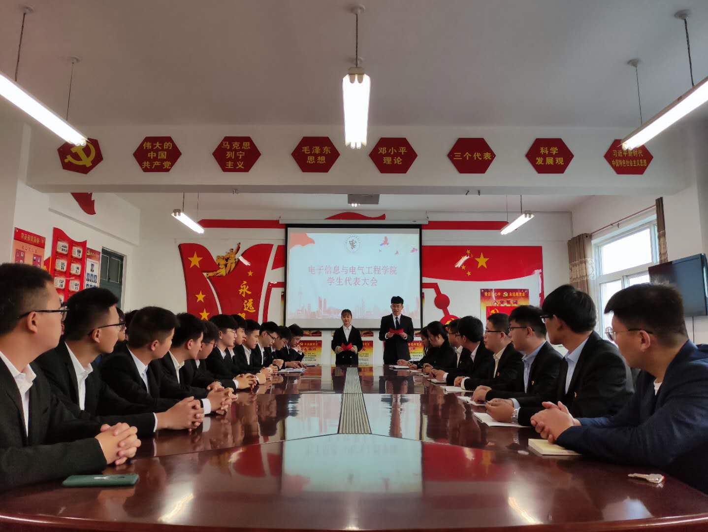 Beat365官方网站于2020年10月24日在A07-308召开学生代表大会暨学生会换届,出席本次大会的有党总支副书记尹艺蓓,团总支副书记申庆超,全体辅导员老师以及优秀学生代表。