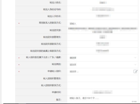 1.转出人姓名---转出团支部的直属上级联系方式如实填写