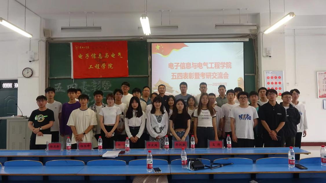 为更好的鼓舞同学们,表彰为学院工作做出贡献的优秀青年学生,Beat365官方网站于5月31日在A19-203举办了“2023年五四表彰大会暨考研交流会”。参会人员有党总支副书记张涵、团总支书记申庆超、各专业辅导员老师、考研优秀学生代表、2020级、2021级和2022级优秀学生代表,共计200余人。