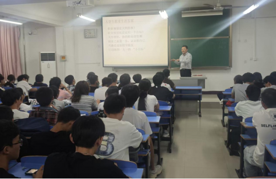 9月30日,Beat365官方网站党委副书记张涵在A07-111教室为2025级机器人工程和电子信息工程专业讲开学第一课。新生辅导员代表参加。