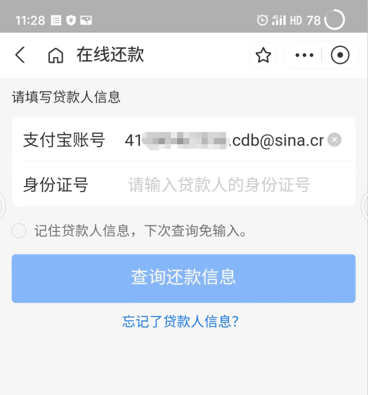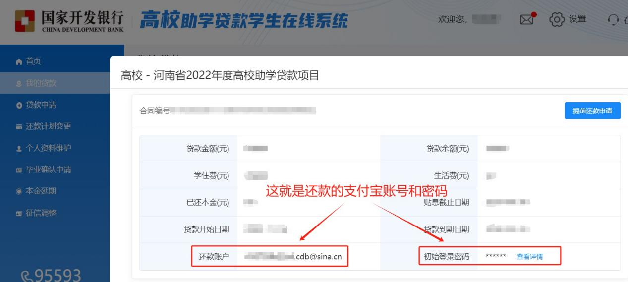 2.输入还款的支付宝账户,注意该账户为助学贷款系统中的账户,在助学贷款学生在线系统中查看: