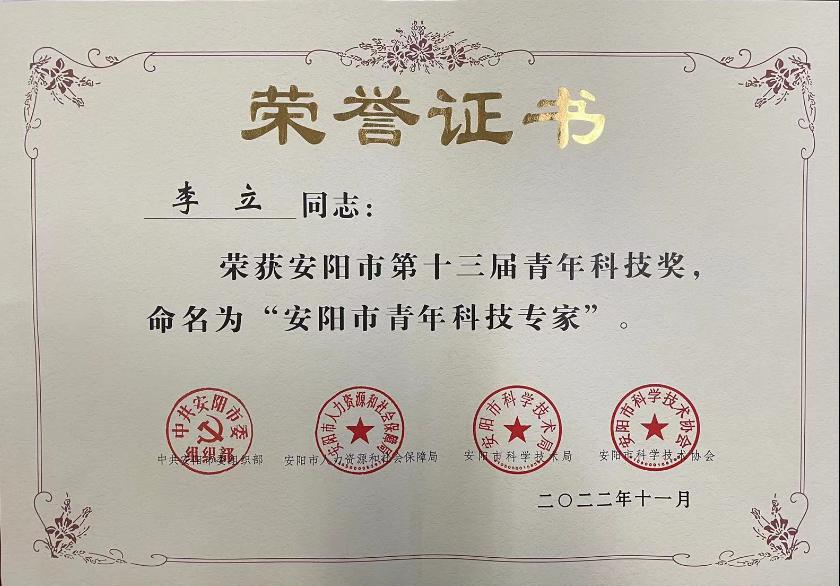 根据《安阳市青年科技奖评选管理办法》,经专家评审、市青年科技奖领导工作委员会审批,公布了第十三届青年科技奖评选结果。Beat365官网教师李立当选为2022年安阳市青年科技专家。是Beat365官网人才队伍建设取得的新进展。
