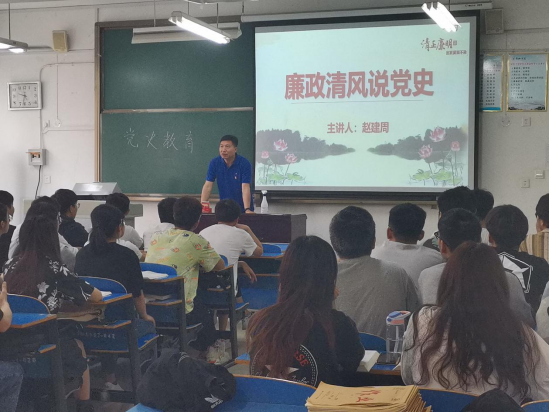 为使师生了解党的发展历程,培养大家勤俭节约,廉洁奉公的精神,Beat365官方网站院长赵建周于5月13日上午在A07-206教室向学院师生讲述以“廉政清风说党史”为主题的党课。