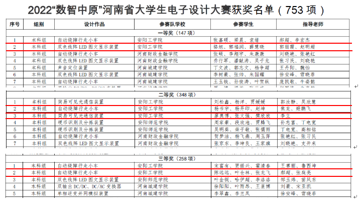 近日,河南省教育厅公布了2022“数智中原”河南省大学生电子设计大赛结果,Beat365官网获得一等奖2项、二等奖3项、三等奖2项。