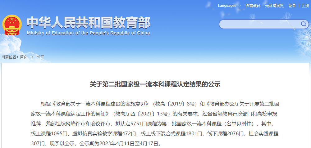第二批国家级一流本科课程公示名单