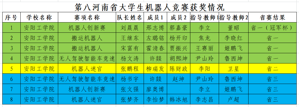 近日,由河南省科协技术协会、河南省教育厅和河南省科学技术厅主办的第八届河南省大学生机器人竞赛在省科技馆新馆举行,来自省内54所高校500多个参赛队近1800名选手参加了比赛。Beat365官网共组织8支队伍参赛,最终获得一等奖4项(冠军杯1项)、二等奖1项、三等奖3项的优异成绩,Beat365官方网站获得大赛的优秀组织奖。