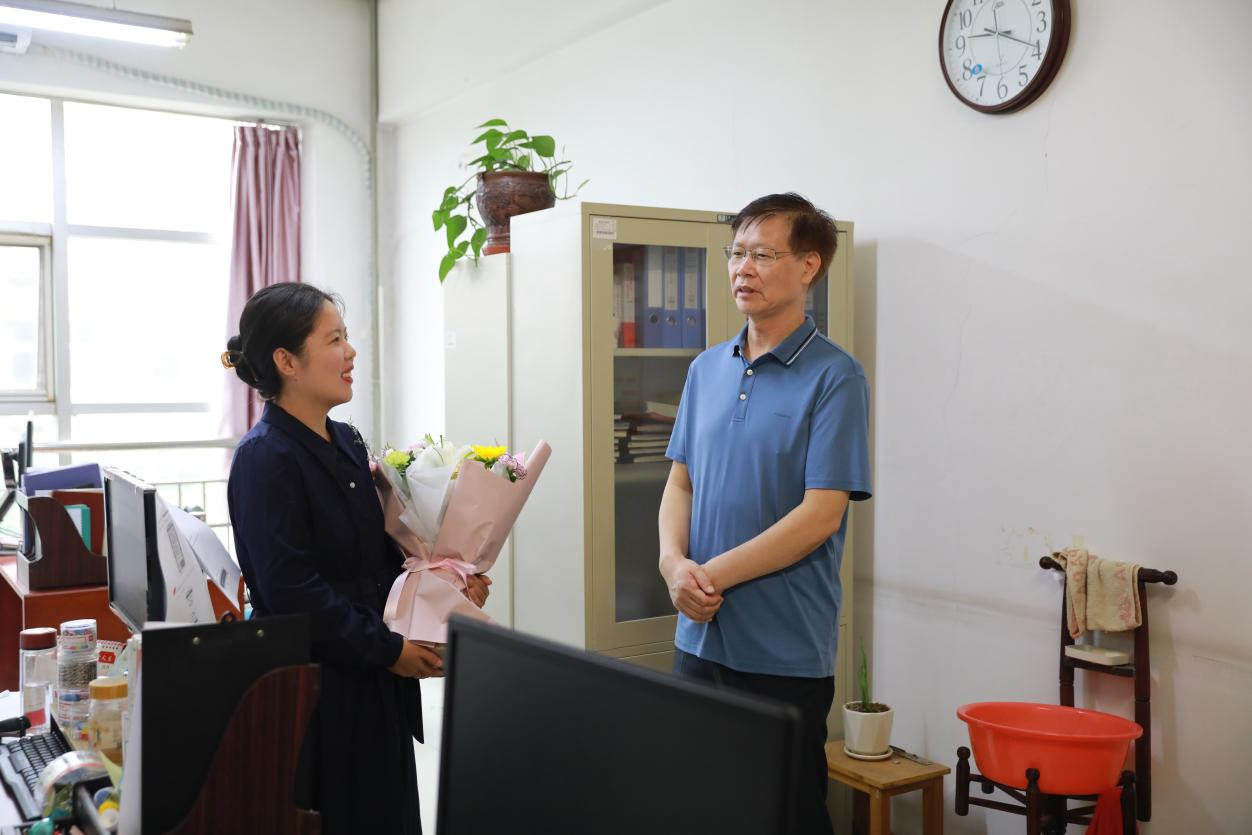 9月10日,教师节当天,校党委副书记牛瑞庆带队走访慰问Beat365官网教师代表董莹,向她送上节日的问候与祝福,相关部门领导陪同慰问。